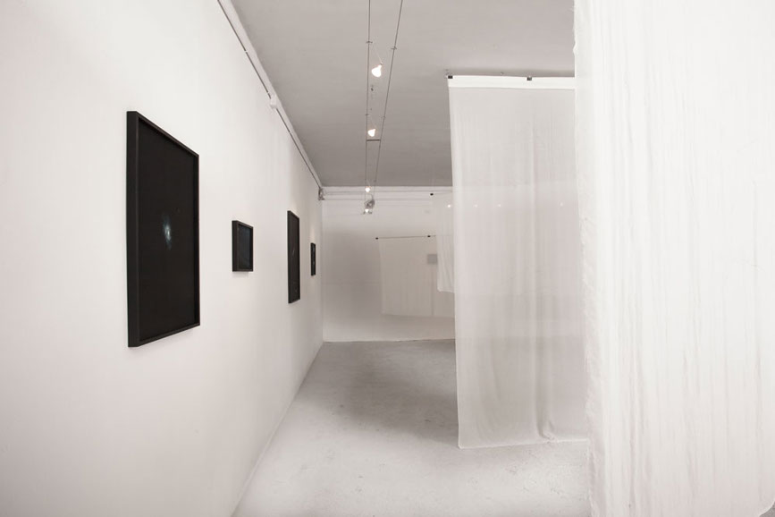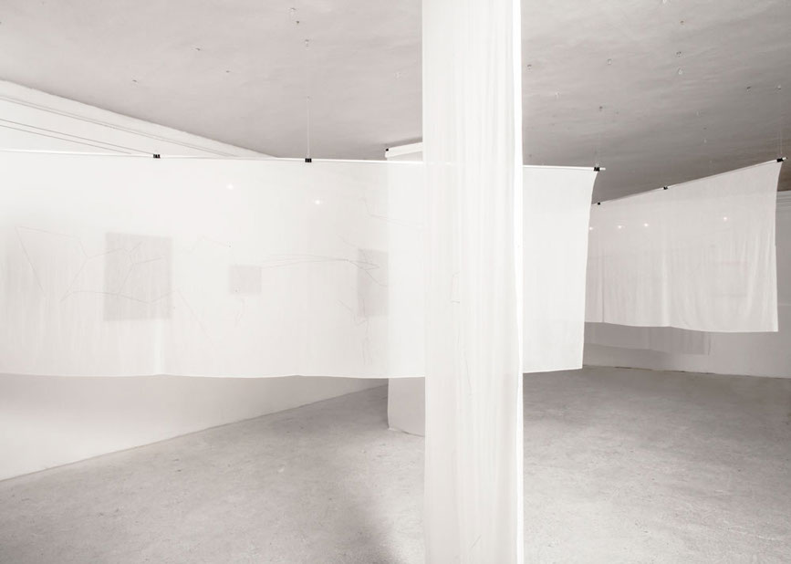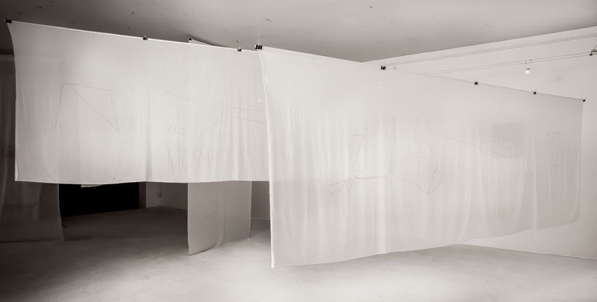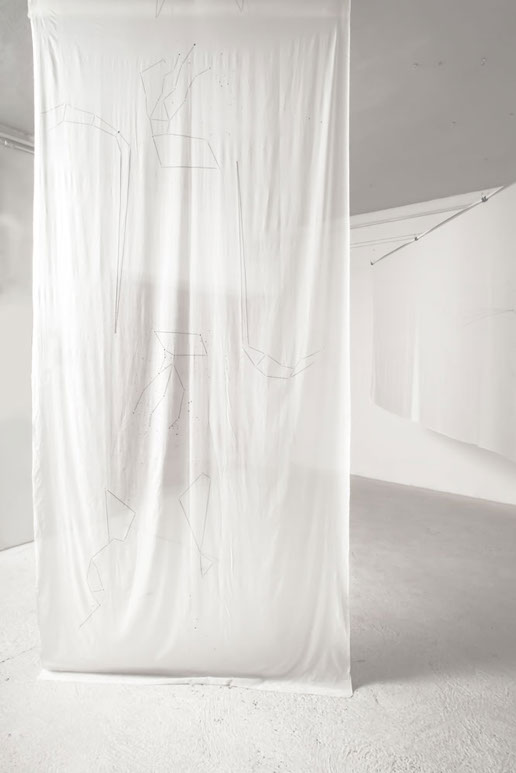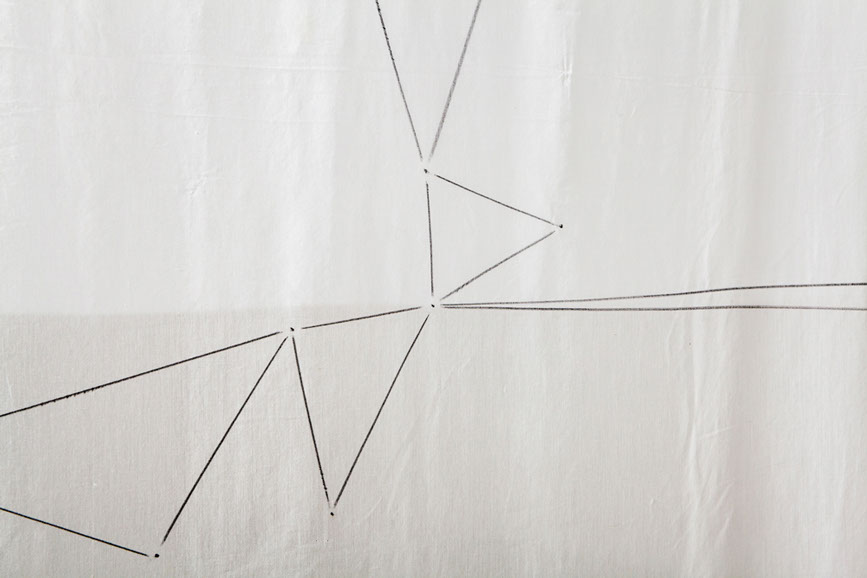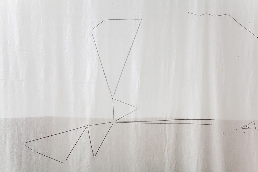 5 tele di cotone, su ognuna delle quali è riportata la mappa dei nei di 5 artisti, colleghi, amici.