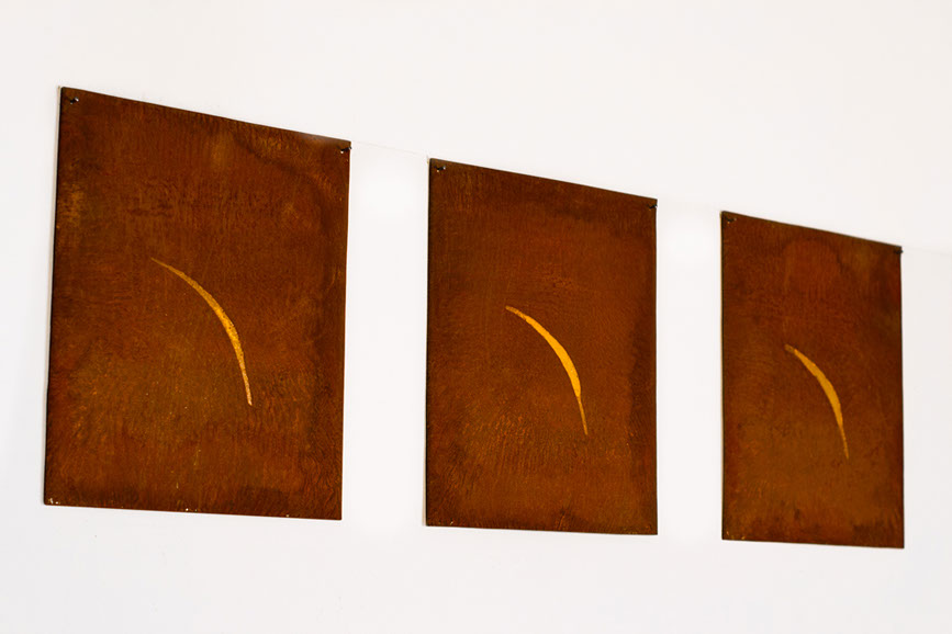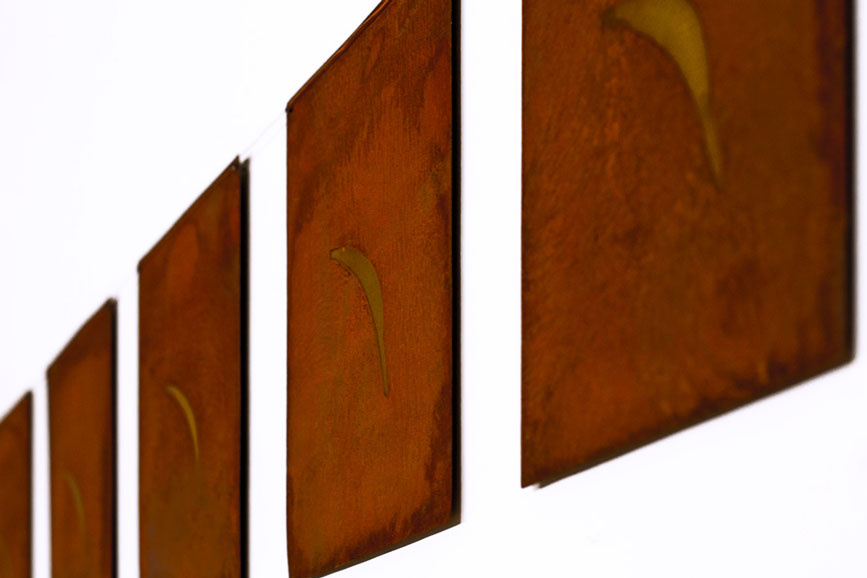 9 lastre di ferro di 30 x 35 cm, filo di rame