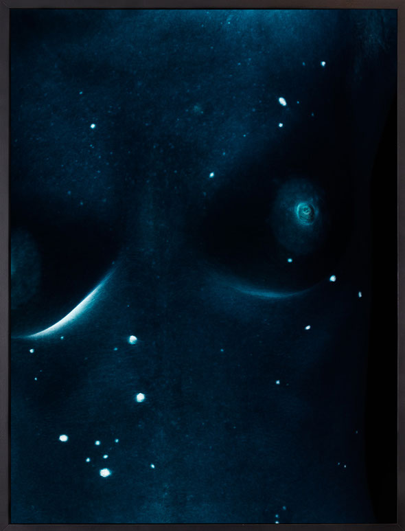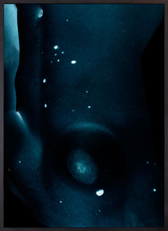 Ogni immagine è la fotografia di una parte del corpo femminile, al negativo.